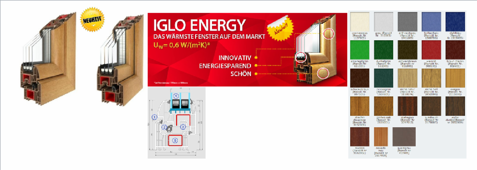 Das neue Fenster IGLO ENERGY ist eine Eigenentwicklung von DRUTEX S.A. Es ist entworfen worden, um den Kunden erfreuen zu können, damit er ein modernes Produkt benutzt, welches durch entwickelte Forschung entstanden ist. IGLO ENERGY ist ein Produkt, welches den besten Isolationswert von Uw = 0,6 W/(m2K)* auf dem Markt erreicht. Es ist ein absoluter Rekord in Hinsicht auf Energieersparnis. Das Fenster besitzt ein innovatives System von Abdichtung, das nur im Angebot der Firma DRUTEX S.A. erhältlich ist und für die besten Werte sorgt. Das erste Mal auf der Welt benutzt Drutex eine Zweikomponentendichtung mit geschäumten EPDM als Mitteldichtung. IGLO ENERGY ist eine Investition in überdurchschnittliche Qualität und hohe Energieersparnis. Ein Fenster, das Wärme in jedem Haus bewahrt unabhängig davon wie die Wetterbedienungen sind. *bei Fenstermass 1230mm x 1480mm